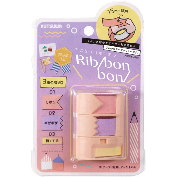 北海道・沖縄・離島へのお届けは別途送料がかかります。詳しくはこちら文具女子アワード2022受賞商品!マスキングテープをリボンの形やギザギザの形に切れる2wayのテープカッターです・飾り切りが出来る3種のカッター入り ・まっすぐにも切れる2wayタイプ ・15mm幅のマスキングテープ専用 ※マスキングテープは付属しておりませんサイズ:H20×W43×D20mm、2.5g(1個あたり)材質:ABS