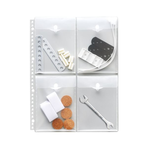 ポッケde整理(なんでもポケット) A4 2・4・30穴 片面4ポケット マチ・フタ付 1パック(2枚)