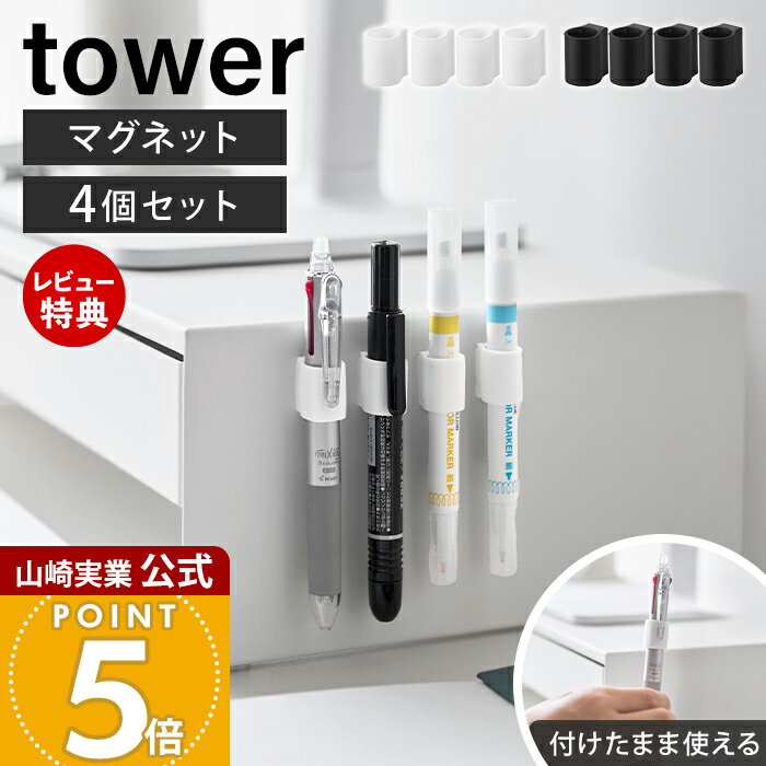 【当店限定特典付き】山崎実業 マグネットペンホルダー タワー 4個組 tower 公式 ペンホルダー ペン収納 マグネット 壁付け 浮かせる収納 デスク周り 冷蔵庫横 玄関 磁石 シリコーン 文具収納 ホワイト ブラック 10733 10734