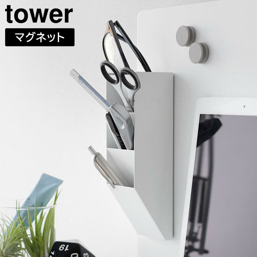 【LINEお友達で最大330円クーポン】[ マグネットペンスタンド タワー スチールパネル対応 ] 山崎実業 tower 10096 10097 ホワイト ブラック / ペン立て デスク周り 冷蔵庫横 玄関 貼付け はさみ ハサミ 浮かせる収納 タワーシリーズ