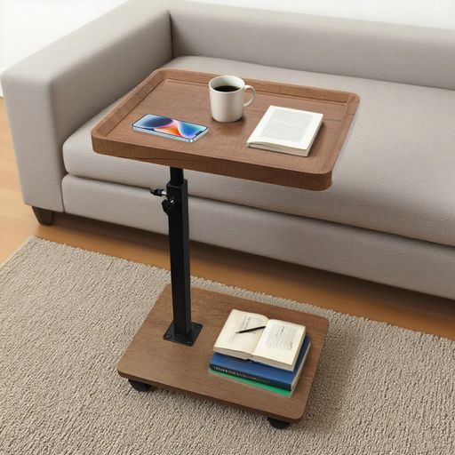 サイドテーブル昇降式介護テーブルスタンド付きベッドテーブルソファテーブル昇降式テーブル木製高さ調節可能360度簡単回転幅40軽量おしゃれ