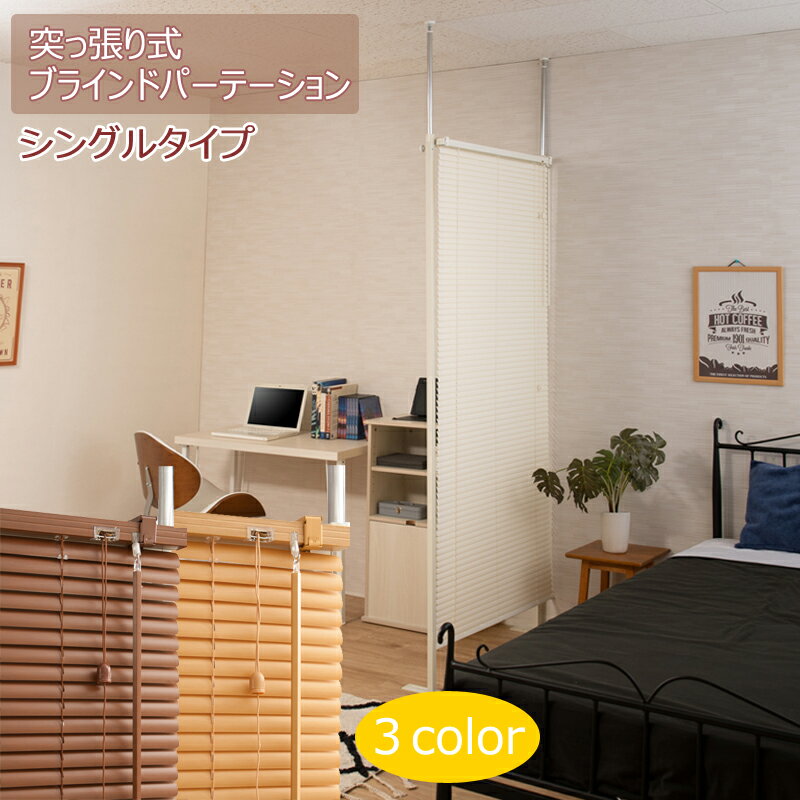 突っ張り間仕切りブラインド つっぱり式 パーテーション パーティション シングルタイプ オフィス 事務所 リビング 目隠し ホワイト ナチュラル ブラウン おしゃれ シンプル 北欧 送料無料