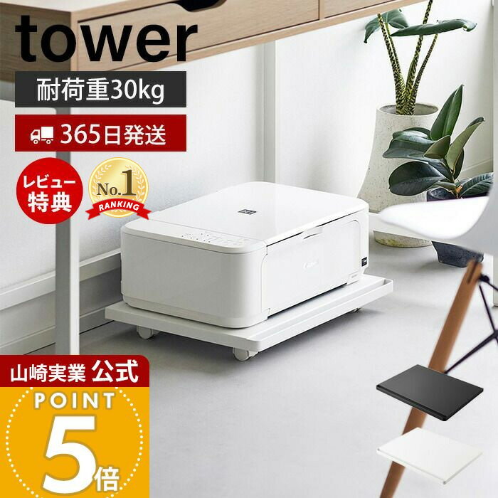 感謝祭開催中 【 山崎実業 プリンターラック タワー キャスター付き 】 tower プリンター収納ラック プリンター 加湿器 観葉植物 ラック 台車 平台車 キャスター デスク下 キッチン棚下 リビング収納 シンプル おしゃれ 2022 2023 公式 ホワイト ブラック YAMAZAKI