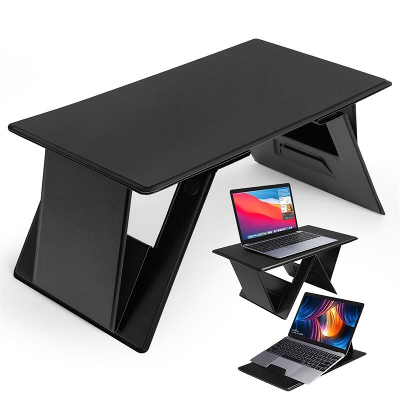 【商品詳細】本体サイズ:45。5cm*25。2cm*1cm 重量:1。1kg 素材:PUレザー 使い方:磁石が組み込まれており、自由に好みの形に組立ててデスクモード(2パターン)やスタンドモード(3パターン)に変更できます。最大15。6インチまでのノートPC対応。スタンドモードは1。5kg未満のPC推奨。耐重量:20kg※本など面積が大きいものに限ります。乗ると危険ですので絶対におやめください。【場所を選ばずPC作業】座りっぱなしのデスクワークは血流、姿勢が悪くなり体に大きな負担を与えます。気軽に立ってデスクーワークをしたい方にぴったりの商品です。またソファやベッドでも膝上テーブルのようにしてPC操作が出来てWEB会議などにぴったりです。15。6インチまでのノートPCでマウスも置けます。小さいテーブルなので一人掛けソファにもぴったり【変幻自在のテーブル】【変幻自在のテーブル】上記のテーブル仕様の他に、ノートパソコンスタンド仕様のスタンドモードもお使い頂けます。2段階で角度が選べて好みの角度に調節頂けます。またスマホやタブレットスタンドを使える仕様もあり、合計3パターンあります。※スタンドモードは軽量なPCを推奨します。(1。5kg程度迄)2kg超えるPCは滑り止め部分で支え切れず滑り落ちる可能性がありますので予めご了承ください。【簡単収納で場所を取らない】使用後は1枚の板のように折りたたみが可能です。厚さも1cmなので本棚や引き出しにコンパクトに収納可能です。※説明書は外国語となります。 ※配送または仕入状況により商品の箱に凹み、スレ等がある場合がございます。パッケージ不良による交換返品は対応出来かねますので、ご了承をお願いします。