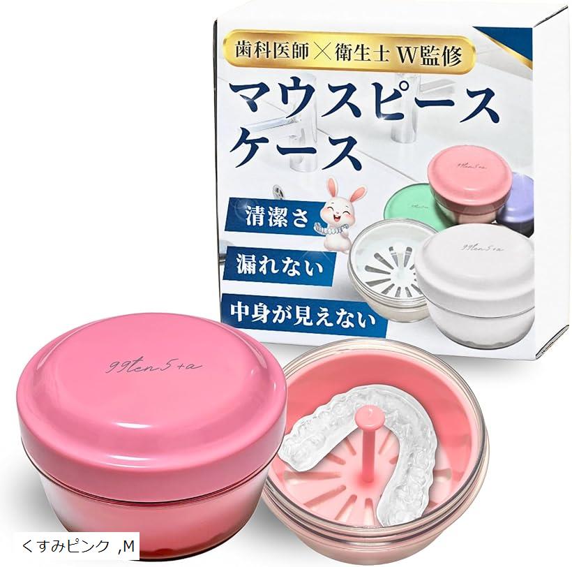 歯科医師監修、歯科衛生士監修 マウスピース ケース リテーナーケース 中身が見えない しっかり洗える (くすみピンク, M)