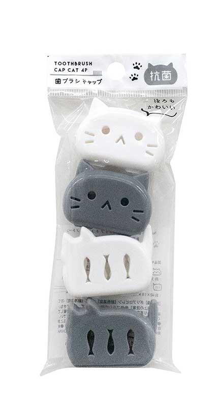 歯ブラシキャップ 抗菌 ネコ モノトーン 4個入 (100円ショップ 100円均一 100均一 100均)