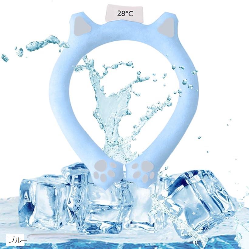アイスネックリング ネッククーラー 冷却グッズ ネコ 首ひんやり 熱中症対策 暑さ対策 28℃ 自然凍結 ブルー