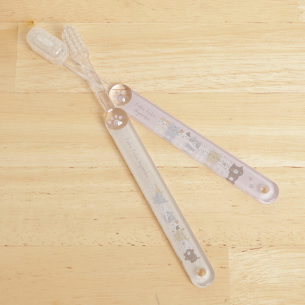 みつめて歯ブラシ2本セット 歯ブラシ ハブラシ こども レディース 旅行 中学生 高校生 ティーン 通勤 通学 携帯 色違い お揃い ねこ 猫 キャラクター ふくふくにゃんこ ハピンズ