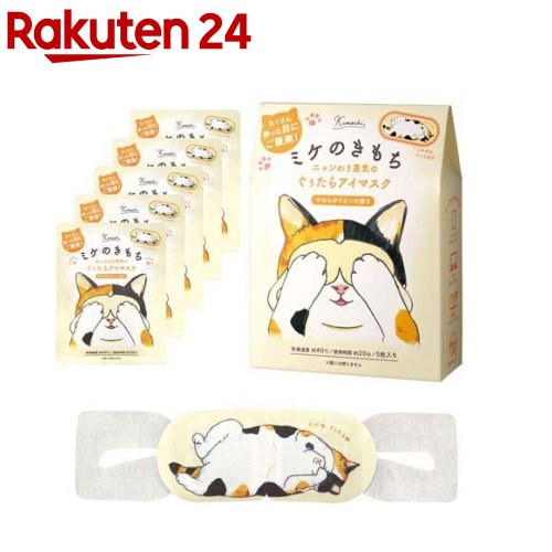 お店TOP>癒し用品>リラックス&リフレッシュ>リラックス用品>リラックスグッズ>ネコのきもちホットアイマスク ミケのきもち (5枚入)【ネコのきもちホットアイマスク ミケのきもちの商品詳細】●あったか心地よい蒸気で目と目元をじんわり温め、気分もほぐれるアロマタイプの温熱アイマスク5枚入り。●仕事やゲームなどでPC・スマホを使いすぎた時に。ほっとひと息つきたい時に。くつろぎモードのねこたちと一緒に、ぐぅたら気分でリラックスタイムを。●やわらかリネンの香り【使用方法】(1)袋からアイマスクを取り出します。(開封すると発熱が始まるので、すぐにご使用ください。)(2)ミシン目を切り取り、耳にかけ、白い無地の面を目元に当ててご使用ください。【セット詳細】ホットアイマスク×5枚【注意事項】・本品は飲食物ではありません・本品を用途以外に使用しないでください。・目や目のまわりに、炎症・傷・湿疹等異常のある時はご使用にならないでください。・熱さに敏感な方、温度感覚が弱っている方、医師の治療を受けている方は、ご使用にあたり医師または薬剤師にご相談ください。・幼児、高齢者、身体の不自由な方など自らの意思で使用を中止できない方は、ご使用にならないでください。・目元パック等と併用しないでください。また、目薬点眼後はしばらく時間を置いてからご使用ください。・長時間のご使用やアイマスクをつけたまま眠らないでください。使用中のアイマスクが、寝具や衣類等に押し付けられたり覆われる状態が続くと、異常過熱を起こすおそれがありますのでご注意ください。・使用中熱すぎると感じた場合はご使用をおやめください。また、使用中、使用後に肌に赤み・かゆみ・刺激等の異常があらわれた場合はご使用を中止し、皮膚科専門医等にご相談ください。・無理な力を加えると破損のおそれがありますのでご注意ください。破損した場合はご使用にならないでください。・アイマスクが破損し、内容物が肌に付着した場合は、水で洗い流してください。万一目に入った場合はすぐに水で洗い流し、飲み込んだ場合はすぐに水を飲むなど応急処置を行い、医師にご相談ください。・使用中、香りで気分が悪くなった際にはご使用をおやめください。・発熱が終了したアイマスクは再使用できません。地方自治体の定める区分に従い、処分してください。・高温多湿や直射日光、熱源やコンセントとの接触を避け、乳幼児の手の届かないところで保管してください。・袋に傷がつくとご使用できない場合がありますので、保管の際ご注意ください。【原産国】中国【発売元、製造元、輸入元又は販売元】グローバルプロダクトプランニングリニューアルに伴い、パッケージ・内容等予告なく変更する場合がございます。予めご了承ください。グローバルプロダクトプランニング150-0036 東京都渋谷区南平台町12-8 +Fスクエア03-3770-6170広告文責:楽天グループ株式会社電話:050-5577-5043[温熱用品]