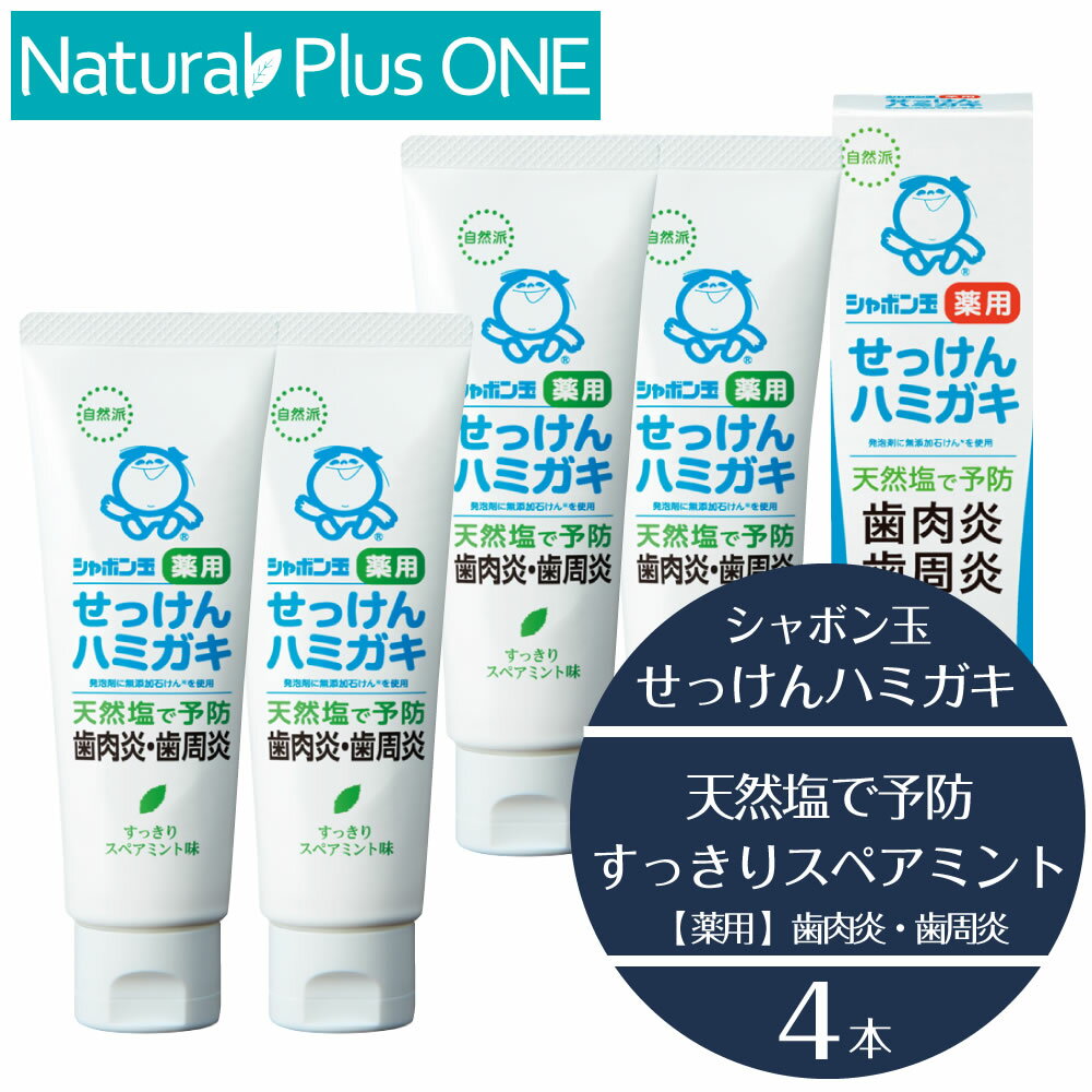 【 4本セット 】無添加 ハミガキ粉 シャボン玉 薬用 せっけんハミガキ 80g ブラッシング 歯の汚れを取る 歯肉 マッサージ 血行促進 引き締め 歯周病 対策 天然 由来 スペアミント 合成界面活性剤 不使用 サッカリン 不使用 防腐剤 不使用 ナチュラスプラスワン
