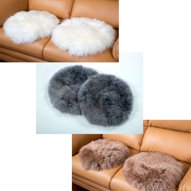 ★ムートンクッション 35丸cm 2枚組 表面:羊毛皮100%※代引き不可※北海道は送料別途1500円※沖縄・離島は不可