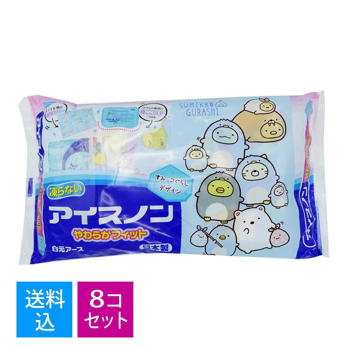 【×8個セット送料込】白元 アイスノン やわらかフィット すみっコぐらし 不凍ゲルタイプ保冷枕 洗える専用カバー付き 夏の就寝時に。発熱時に。打撲、ねんざ等で冷やしたい時にも くりかえし使用できます( 4902407024985 )【1ケース販売】