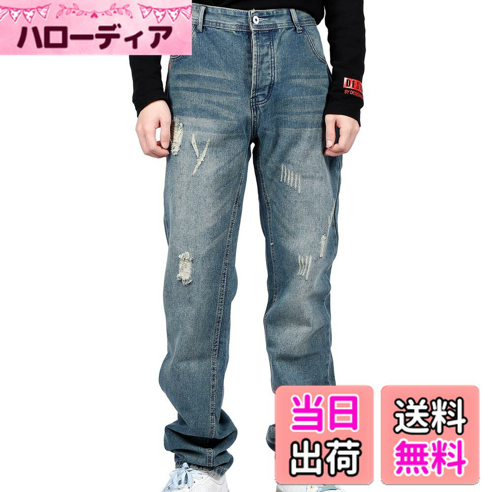 【送料無料】[TOWYYO] 原宿系 デニムパンツ メンズ ジーンズ ズボン ダメージデザイン ワイドパンツ スラックス カジュアル ハイウエスト 美脚 柔らかい 通学 かっこいい 男女兼用 ロング ゆったり 色:ブルー、サイズ:XL