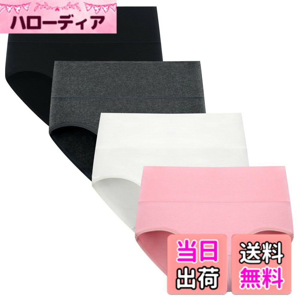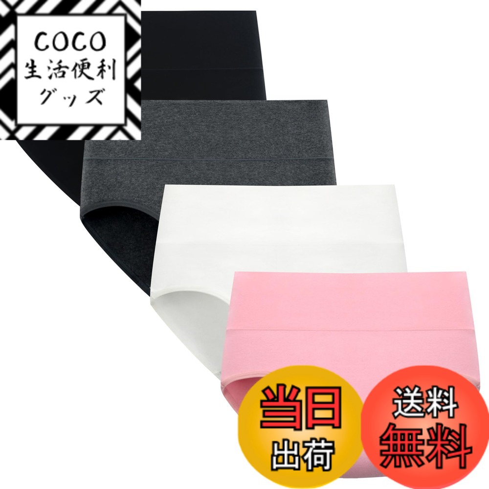 【送料無料】[POPKOK] [ポップコー]ショーツ レディース 深め 下着 セット 女性用 綿 ハイウエスト インナー パンツ 大きいサイズ 肌着 M-4L 色:ブラック/ダークグレー/ホワイト/ピンク、サイズ:M Regular