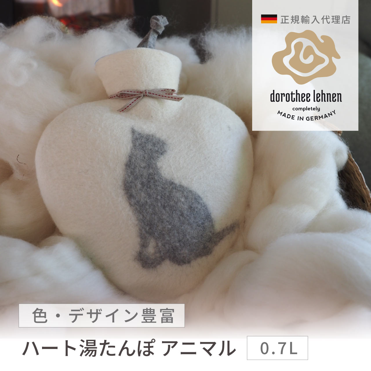 湯たんぽ ハート型 0.7L ドイツ製 フェルトカバー ハンドメイド アニマル 動物 エコ あったかグッズ 温活 かわいい おしゃれ ギフト 選べるデザイン ファシー ボトル Dorothee Lehnen DLWF_ANIMAL