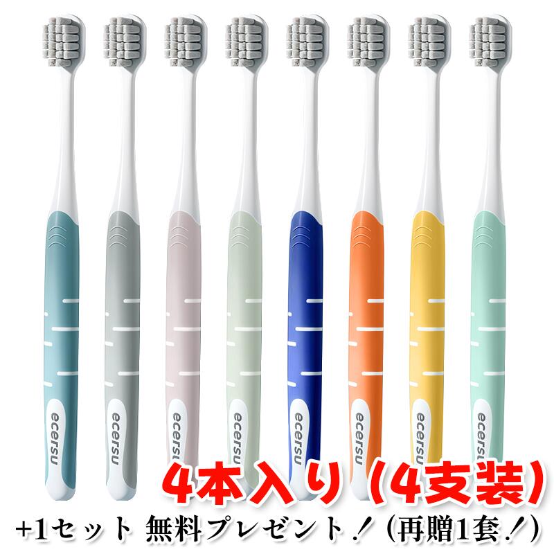 【商品の特徴】 「雲のように柔らかい」極上の磨き心地。銀イオン配合の抗菌歯ブラシ 0.12mmの超極細毛が、歯茎を傷つけず、隙間までは優しく包み込むように磨き上げます。競合品でよくある「毛先が硬い」「すぐに抜ける」といった不満を解消し、毎日の歯磨きを心地よい習慣に変えます。★☆★☆★☆★☆★☆★☆★☆★☆★☆★☆★☆★☆【期間限定キャンペーン】 本商品をご購入の方に、同品を1セット無料プレゼント! 実質 8本で 1580円(税込) 送料無料★☆★☆★☆★☆★☆★☆★☆★☆★☆★☆★☆★☆【3つのこだわり】 1. 歯茎をいたわる「雲のような柔らかさ」 直径0.12mmの極細ソフト毛を高密度植毛。歯茎への刺激を大幅に軽減しながら、汚れをしっかり除去。敏感な方やお子様にも安心してお使いいただけます。 2. 清潔を保つ「銀イオン抗菌技術」 ブラシ部分に銀イオンを配合。細菌の繁殖を抑え、清潔な状態をキープ。衛生面にも徹底的にこだわりました。 3. 磨き残しを減らす「W設計」・極細毛: 歯と歯の間の狭い隙間まで毛先が届き、磨き残しを防ぎます。・裏面の舌クリーナー: 凹凸デザインが舌苔をすっきり除去し、口内全体の清潔感を高めます。★☆★☆★☆★☆★☆★☆★☆★☆★☆★☆★☆★☆【使いやすさの工夫】・滑りにくいグリップ: 握り部分にシリコン製滑り止めを採用。泡立った時も確実に握れ、安全です。・カラフルなカラー展開: 優しい「マカロンカラー」と上品な「モーダンカラー」の2シリーズ。ご家族で色分けすれば、清潔に共用できます。★☆★☆★☆★☆★☆★☆★☆★☆★☆★☆★☆★☆【商品詳細】内容量: 4本入り (キャンペーンで合計8本)カラー: マカロンカラー (4色) / モーダンカラー (4色) 毛質: 銀イオン配合 超極細ソフト毛 (直径約0.12mm)機能: 抗菌、舌クリーナー付き、滑り止めグリップヘッドサイズ: 約1.8 x 1.3cm (コンパクトでお子様も可)★☆★☆★☆★☆★☆★☆★☆★☆★☆★☆★☆★☆【ご使用上の注意】 ・1~2ヶ月を目安に、新しい歯ブラシとお取り替えください。 ・熱湯消毒は毛や柄の変形・劣化の原因となります。お湯はぬるま湯でお願いします。 ・小さなお子様がご使用の際は、保護者の監督のもとで安全にお使いください。