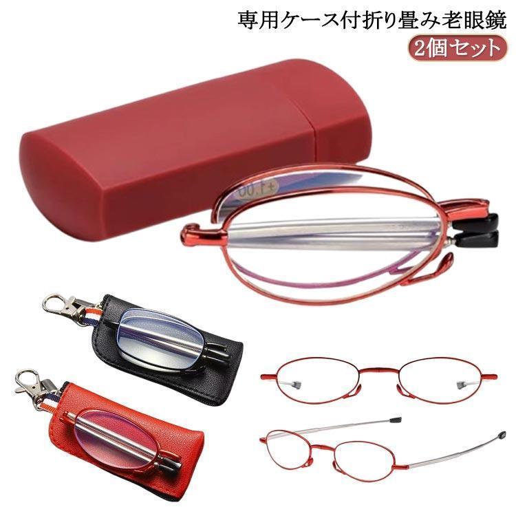 2個セット 老眼鏡 折り畳み 収納ケース付き おしゃれ ブルーライトカット レディース メンズ 折りたたみ式 軽量 めがね 度付き シニアグラス リー