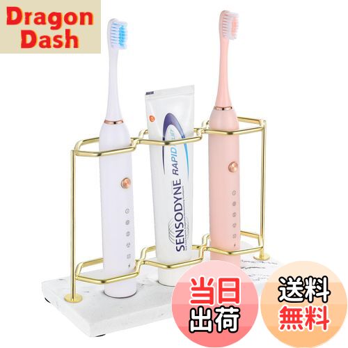 【送料無料】歯ブラシスタンド Luxspire 歯ブラシホルダー 歯ブラシ立て 歯ブラシ収納 金属ラック 3本収納 歯磨き置き 洗顔料置き シェーバー置き 天然樹脂 滑り止め カビない お手入れ簡単 多機能 洗面所 浴室 化粧台 マーブル調