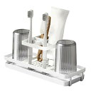 歯ブラシスタンド 置き型 防錆 歯ブラシホルダー 大容量 歯ブラシ立て 洗面台 歯ブラシ置き 水切り 歯磨き粉 電動歯ブラシ収納 シェーバー 洗顔フォーム 多機能 受け皿付き コップスタンド