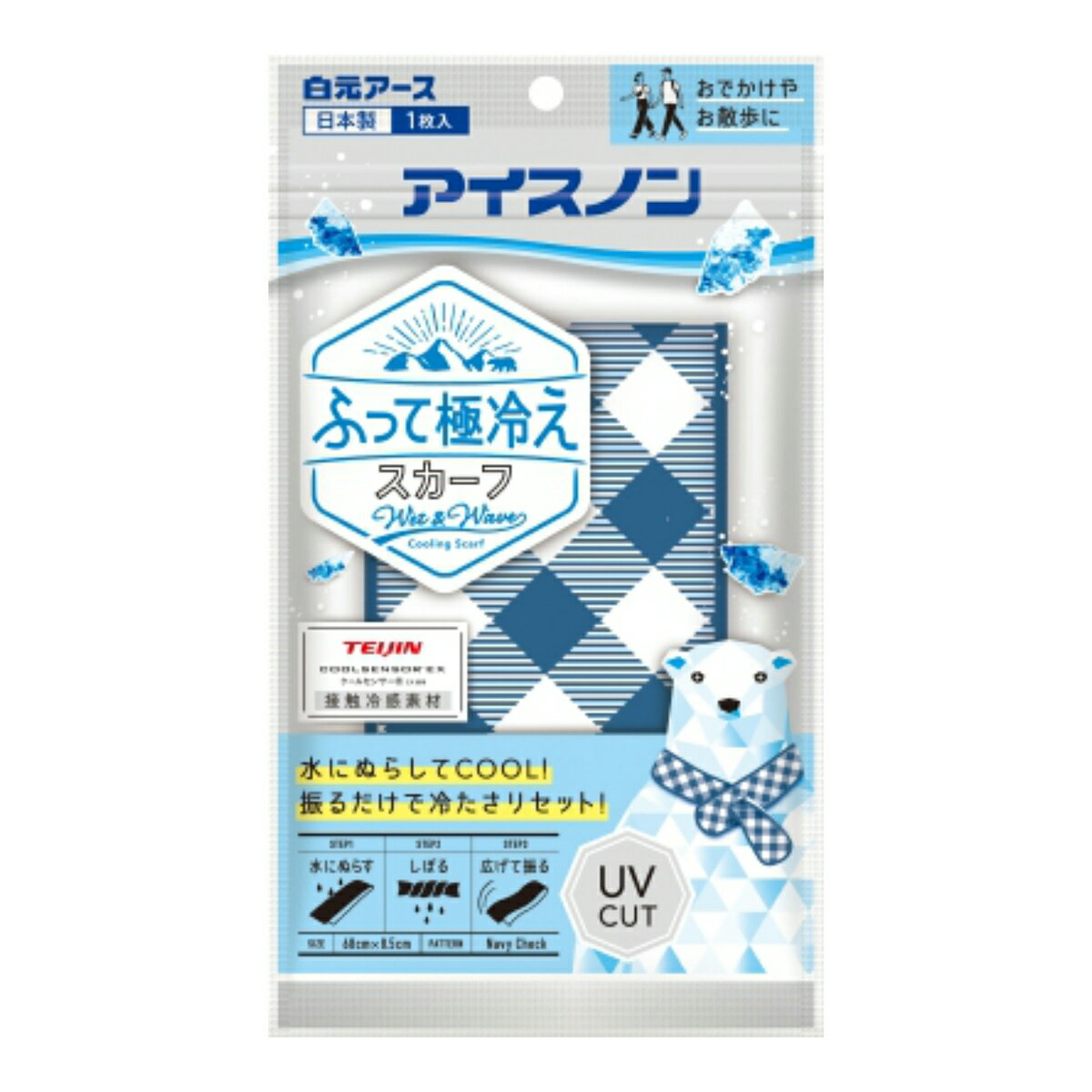 白元アース アイスノン ふって極冷え スカーフ ネイビーチェック 1枚入 本体(4902407024848)※パッケージ変更の場合あり