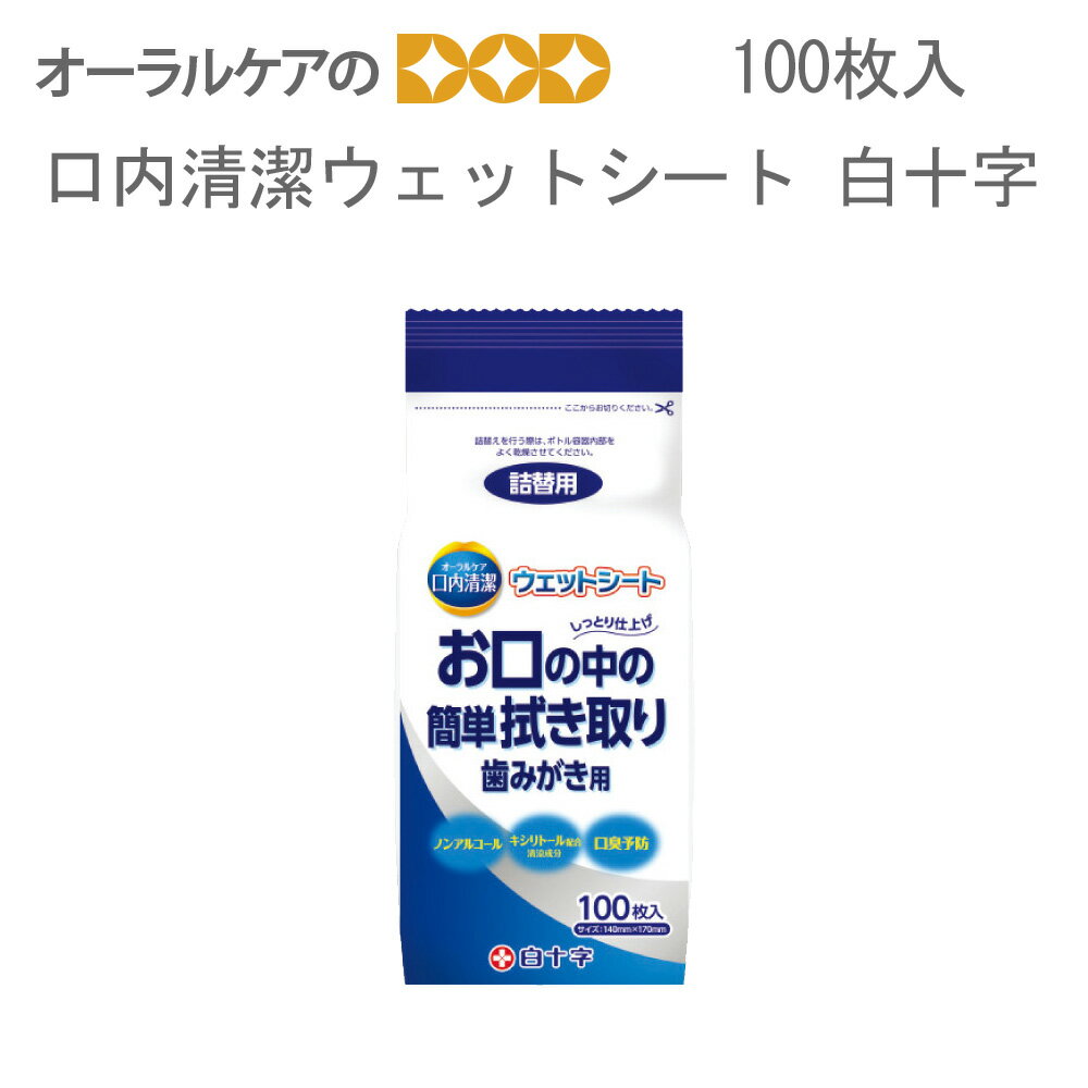 【12/1限定!P2倍!】1個 口内清潔ウェットシート 白十字 100枚入り 詰替用 防災 災害 非常用【メール便不可】