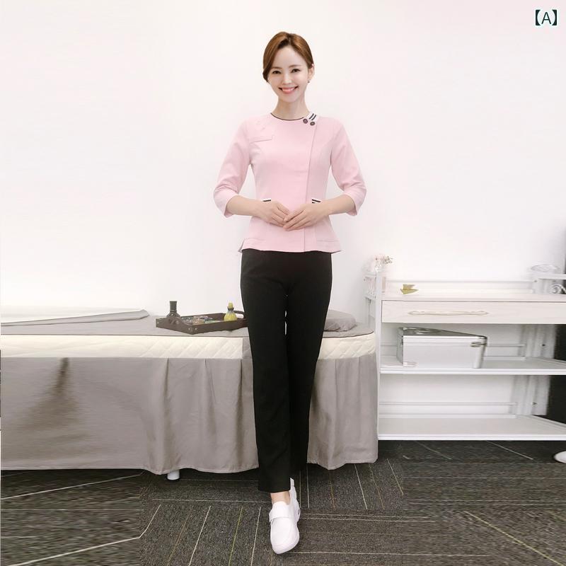 クリニック 制服 介護 リハビリ ユニフォーム 韓国 秋冬 スリム エステ サロン 美容 作業着 SPA 女性 マッサージ 技術者 ヘルスケア 大きいサイズ 七分袖