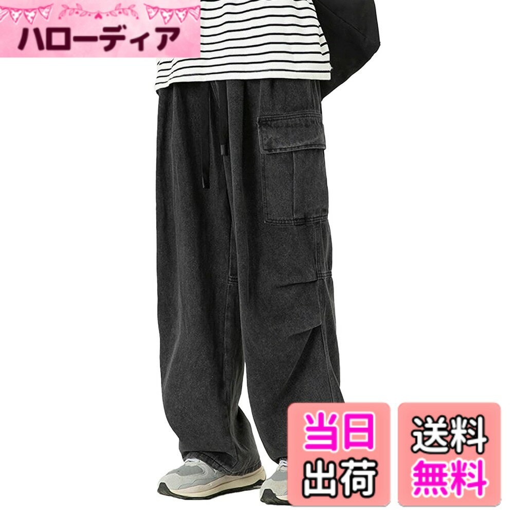 【送料無料】[maytopia] ジーンズ ジーパン デニムパンツ ワイドデニム カーゴパンツ メンズ レディース デニム 大きいサイズ ストレート ワイド ゆったり カジュアル おしゃれ 春 秋 CK261 色:ブラック、サイズ:XL