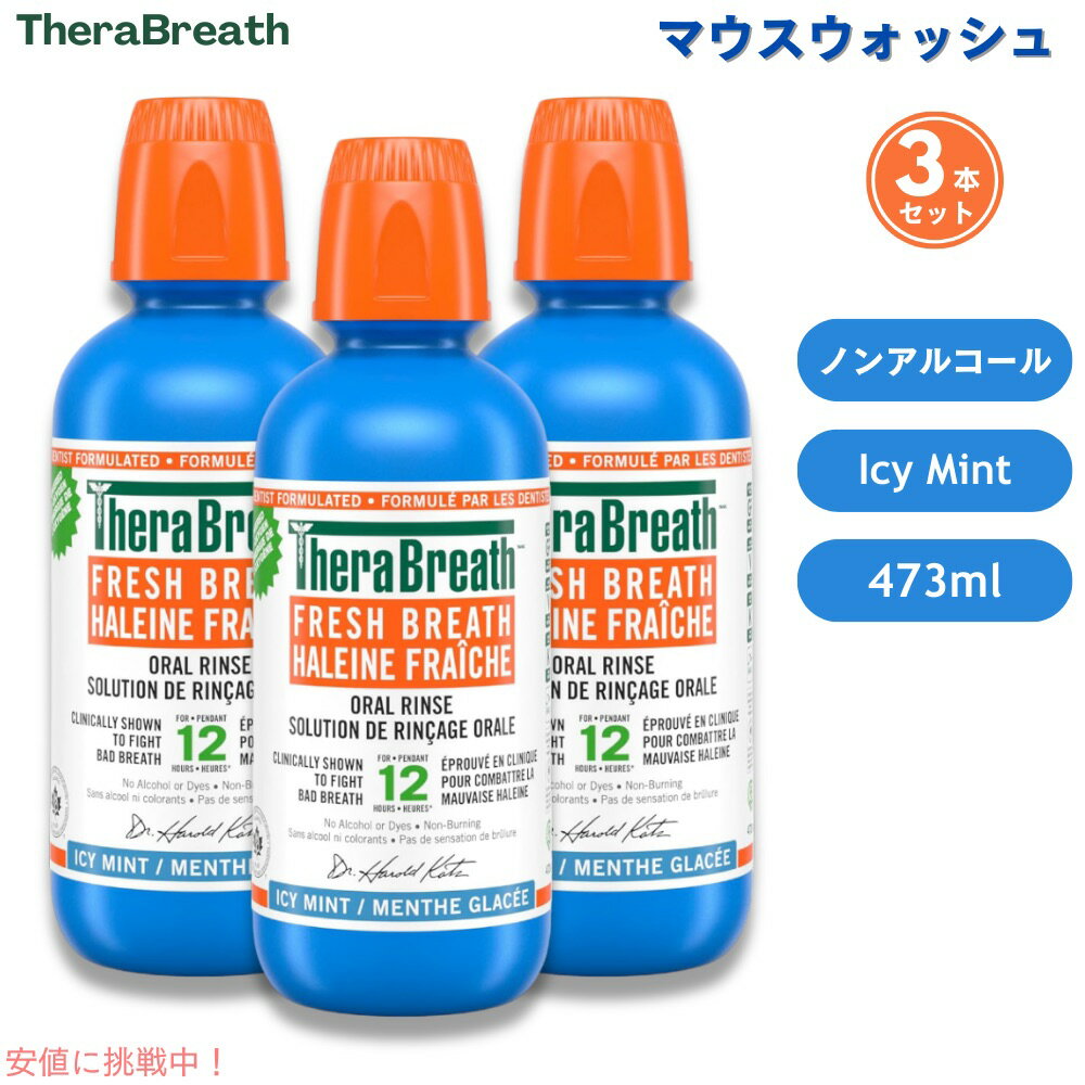 【3本】TheraBreath Oral Rinse, Icy Mint, 16 fl oz / セラブレス フレッシュブレス オーラルリンス [アイシーミント] マウスウォッシュ 473ml