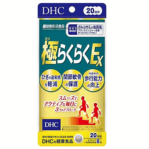 DHC サプリメント 極らくらくEX 20日分(160粒)機能性表示食品(届出番号 I692) グルコサミン ブラックジンジャー 関節軟骨の保護 ひざの違和感を軽減 歩行能力の向上 タブレット 40代 50代 60代 70代【3167】