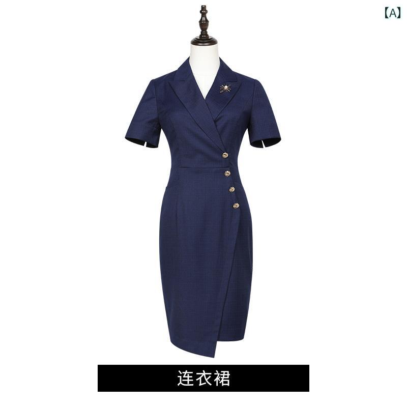 受付 制服 ワンピース レディース おしゃれ 夏 スーツ 女性 スチュワーデス ウェア ネイビーブルー