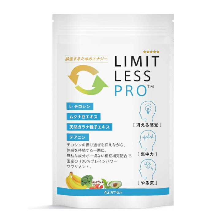 【ドーパミン高配合】日本製 天然ムクナ豆エキス/チロシンなど厳選8種の素材を配合 リミットレスPRO™ サプリメント ガラナ テアニン カプセル