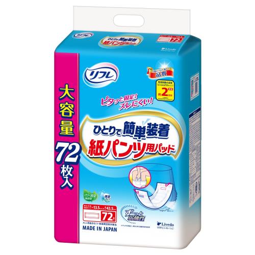 リフレ ひとりで簡単装着 紙パンツ用パッド 2回吸収 72枚入