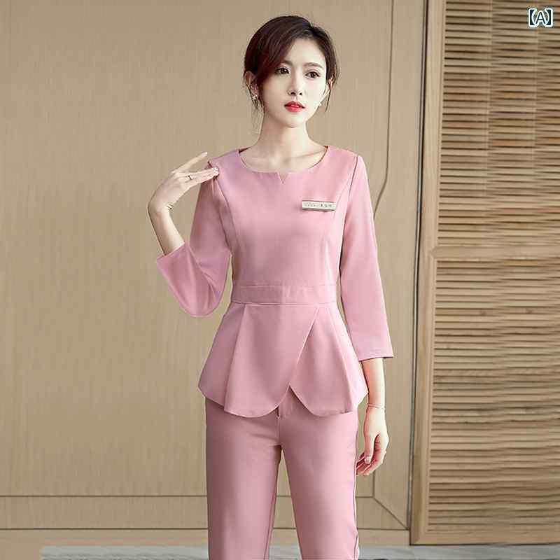 ユニフォーム エステ 事務服 美容院 美容師 作業着 女性 秋冬 高級 健康 センター 足 湯 マッサージ 技術者 スーツ