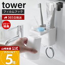 フィルムフック電動歯ブラシ&歯磨き用品収納セット タワー 山崎実業 tower ホワイト ブラック 1881 1882 歯ブラシスタンド 歯ブラシホルダー 歯磨き粉ホルダー 洗面台 壁掛け 浮かせる 吊り下げ 収納【e暮らしR】【ポイント5倍】