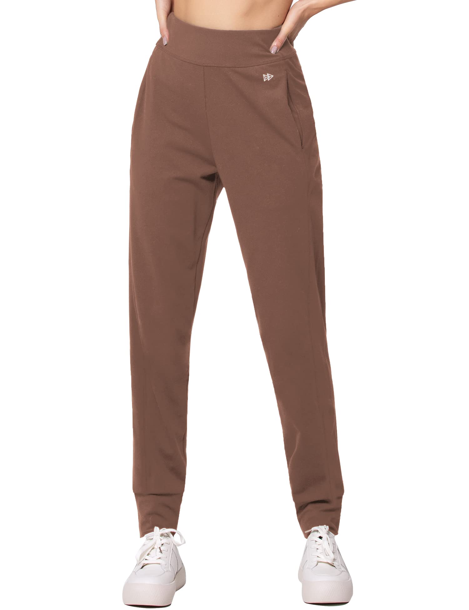 【送料無料】[Yvette] イベット ヨガパンツ レディース ハイウェスト ポケット ジャージ パンツ スポーツ ロング ジョガーパンツ 色:ブラウン、サイズ:XL
