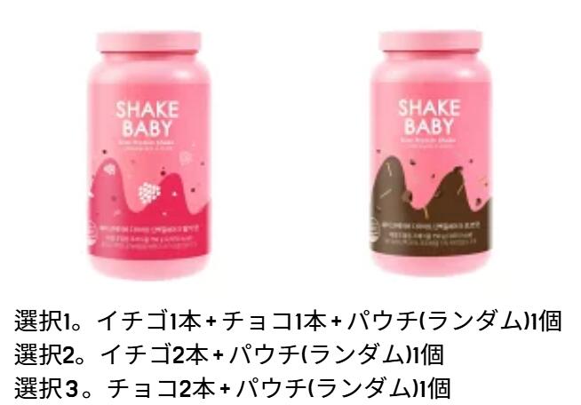 大好評につきShakebaby (シェイクベビー)750g ボトル2本セット!+パウチ(ランダム)1個プレゼント デザート感覚プロテインShakebaby (シェイクベビー) とは 主な使用目的はダイエット・筋肉増強ではあるが、タンパク質の種類や成分より味が重視されている。 ダイエットや美容に効果があることは知られておりダイエット目的が最も多い。 最低でも数ヶ月は続けていくことを考えると美味しいかどうかは最大のポイントだといえます。 低カロリー、最適な栄養バランスでかつ豊富な味のバリエーションで長く続くダイエットをサポート。 韓国ポータルサイトNAVERにおいてもユーザーから高い支持を受けています。 シェイクベビーは体重調節用調剤食品ラインをスタートとして2020年5月に発売されました。 現在まで愛され続けており 22年5月基準 累積46万個ほどを販売しており 現在も着実に120万個以上が販売されているBEST&STEADYブランドです。 Shakebabyの味のラインアップ イチゴ 大定番のイチゴ ! プロテインでよくある味•••だけど、Shakebabyのイチゴ はドライイチゴがたっぷりでイチゴ感半端ないです! ふわっと香り甘酸っぱい香り! つぶつぶ感がやみつき気になる~~! チョコ 何これ!カリッとする ココア味のプロテインってよくあるけど、 シェイクベイビーは食感が特徴! チョコチップじゃないんです〜 カカオ豆を砕いたカカオニブ をたっぷり使ってるからかみごたえがスゴイ これはむしろ食べ過ぎ注意ってくらいハマるくらい美味しい! 抹茶 韓国のお茶で有名な「済州(ジェジュ)島」の抹茶を使用 甘いのは苦手って方にはこちらをオススメ! 苦味とコクが絶妙 サクサクのグラノーラとの相性も最高〜! 穀物 韓国の伝統スイーツドリンク「ミスッカル」 穀物ってどんな味!? と思われる方がいらっしゃいますが、 韓国のプロテインではお馴染みの味! いろんな穀物が、たっぷりだから腹持ちも良いし、 ペコペコな時には重宝 ミルクティー ちゃんと茶葉が香るしっかり目のミルクティー味! アールグレイティーの香りを閉じ込めた濃厚な味わい サクサクのグラノーラと絶妙なハーモニー♬ 日本限定版のパウチバージョンで、韓国では買えない商品 Season2はタンパク質量も増量 プロテイン中級者もエンジョイ出来るようになりました カフェラテ アルゼンチン産のコーヒー豆を使用した大人なフレイバー ほっと一息つきたい時、ミルクとほろ苦いコーヒーで癒される〜 甘さも、苦さもちょうどいい 日本限定版のパウチバージョンで、韓国では買えない商品 Season2はタンパク質量も増量 プロテイン中級者もエンジョイ出来るようになりました