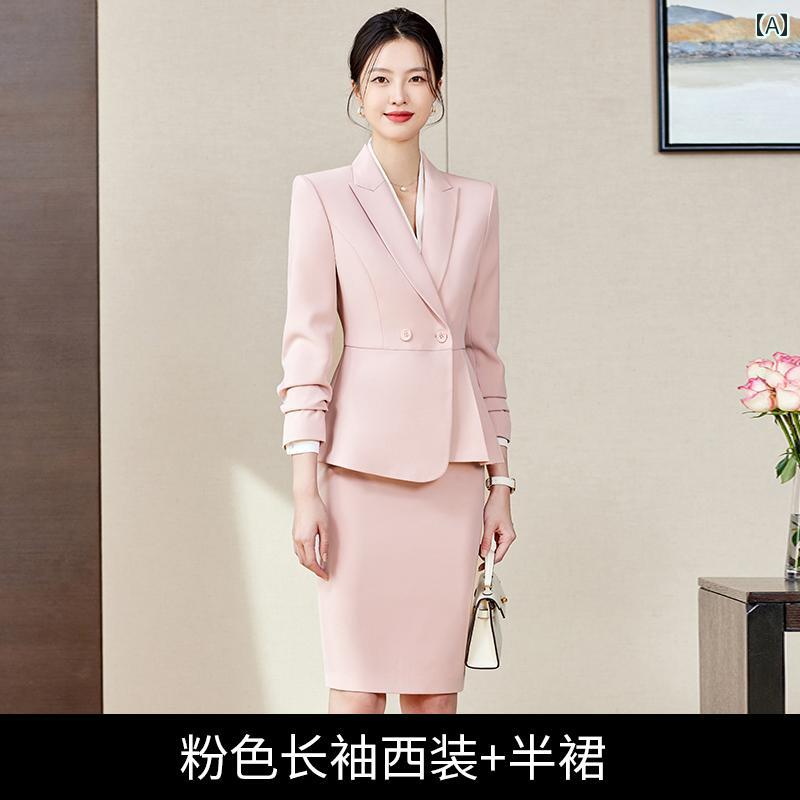 美容院 美容師 作業着 女性 女性用 ピンクの スーツ 秋 プロ フォーマルスーツ スカート 医療 美容 コンサルタント サロン 作業着 ツーピース