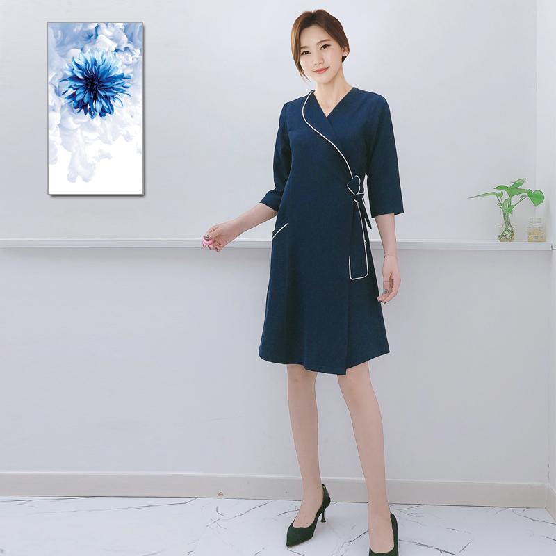 クリニック 制服 ユニフォーム 美容 作業着 レディース 技術者 秋冬 ワンピース 七分袖 半袖 大きめサイズ おしゃれ シンプル Aラインスカート エステ ネイル
