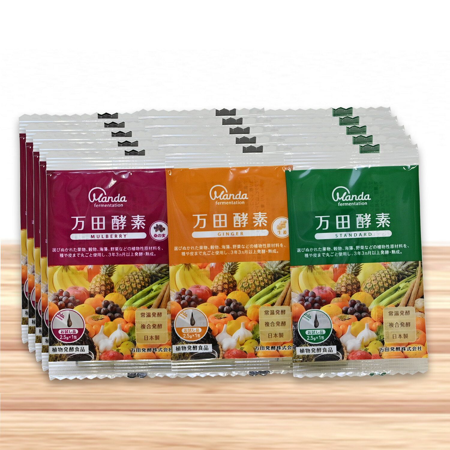 【公式】大人気商品3点セット(万田酵素GINGERペースト分包タイプ&万田酵素MULBERRYペースト分包タイプ&万田酵素STANDARDペースト分包タイプ各5包)生姜 ビワ 桑の実 万田発酵 健康 果物 野菜 発酵食品 送料無料