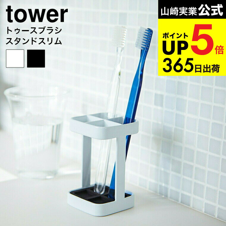 【スーパーSALE★ポイントUP】[ トゥースブラシスタンド スリム タワー ] 山崎実業 公式 tower 歯ブラシホルダー ホワイト/ブラック 歯ブラシスタンド 歯ブラシ立て 4本 2821 2822 タワーシリーズ JGS 最強配送 dej cpj 送料無料