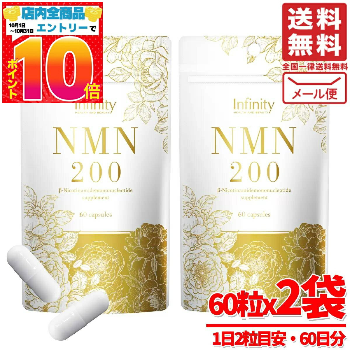 NMN サプリ 日本製 12000mg 60粒x2袋 Infinity 1日200mg 訳あり メール便 コストコ 通販 送料無料