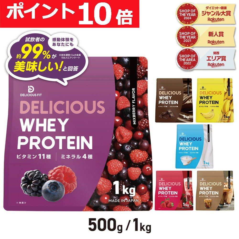 【ポイント10倍&10%OFFクーポン】プロテイン ホエイプロテイン 500g 1kg 国内製造 ビタミン11種 ミネラル4種 デリシャスフィット ポイント