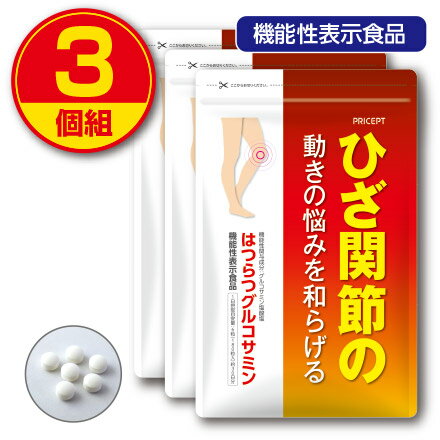 【送料無料・ゆうパケット配送】ひざ関節の動きの悩みを和らげる はつらつグルコサミン 180粒 30日分(3個組)機能性表示食品 えび・カニ由来グルコサミン コンドロイチン 粒タイプ サプリ
