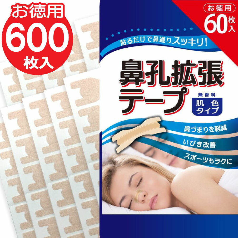 【P最大13倍★ブラックフライデー】鼻孔拡張テープ お徳用 60枚入×10個セット 合計600枚 肌色タイプ 鼻呼吸 鼻づまり 解消 いびき防止テープ 鼻呼吸テープ 日本製 鼻腔拡張テープ メール便 送料無料 ゆうパケット