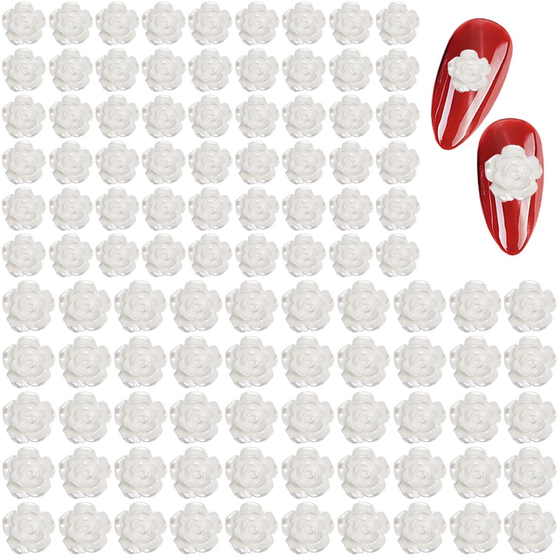 ネイルパーツ 花 200個セット 立体 白い花 パール風 バラ カメリア 椿 3dパーツ 6mm 8mm ホワイト お花パーツ デコパーツ ジュエリーパーツ ネイルアート ジェルネイル レジン (ホワイト)