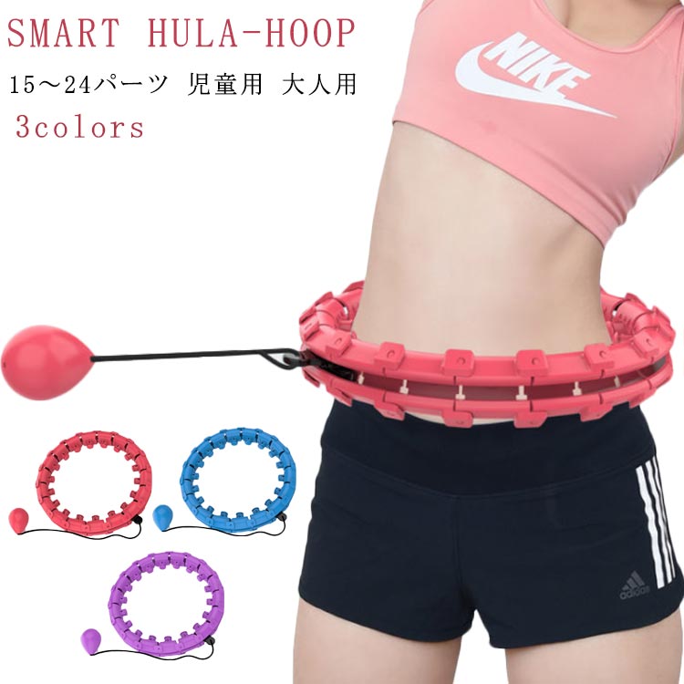 いつでも気軽に家トレ!!SMART HULA-HOOPスマートフラフープダイエットに!運動不足解消に!お家トレーニングに!「痩せたい」「運動不足を解消したい」「筋力をつけたい」ダイエットはしたいけどジムに行く時間がない…本格的なトレーニングは辛くて続かないし…運動はしたいけど中々踏み出せない…などそんなお悩みを解消できるフラフープ!気軽にお家運動始めてみませんか?— POINT1 —落ちないフラフープ自分のウエストのサイズに合わせられて、腰につけるだけで、落ちない簡単フラフープ!身体にフィットし、おうちトレーニングに最適◎— POINT2 —パワーボールフラフープをするように腰を回すと360°回転してくれる、重力ボール。約380gの重力ボールを回すことで負荷がかかり、くびれ作りや脂肪燃焼をサポート!— POINT3 —サイズ調節自由24個のパーツを簡単に取り外し自分の体型に応じたサイズに調節できる◎トレーニングが可能な次世代フラフープ。— POINT4 —カロリー燃焼内側の凸部分がマッサージボードに。トレーニング時に、動かすことでウエスト部分を刺激し、カロリー燃焼をサポート。360°の高圧ラウンドが効果促進!ディテール1 フィットするサイズ感に分解できるフラフープ本体。2 おもり部分の回転をアシストしてくれる車軸。3 ウエストの動きに合わせておもりが重力になってくれるパワーボール。 取扱説明書 1.本体の取り外しハートマークが付いた黒いパーツを後ろにスライドし、連結部を上下に動かして本体を取り出すことができます。2.取り外けに関してまずは車軸をレールに嵌め込み、次は腰に付けてから、連結部の黒いパーツを後ろにスライドし、本体を接続してから使用できます。3.長さの調整長くしたい方はパーツを連結部に嵌め込み、長さを調整できます。短くしたい方はパーツを外側に折れば軽く外すことができます。 サイズワンサイズサイズについての説明・2点セット ・スマートフラフープ ・おもり [ 直径 ] 18パーツ:約24cm [ 内周 ] 18パーツ:約75cm おもり 縦:約12cm、横:約9cm ※内周・直径ともに13〜24パーツ内であれば 1パーツずつで調整可能。素材ABS樹脂色ピンク(18パーツ 50kg以内用)ブルー(18パーツ 50kg以内用)パープル(18パーツ 50kg以内用)備考 ●サイズ詳細等の測り方はスタッフ間で統一、徹底はしておりますが、実寸は商品によって若干の誤差(1cm〜3cm )がある場合がございますので、予めご了承ください。 ●商品の色は、撮影時の光や、お客様のモニターの色具合などにより、実際の商品と異なる場合がございます。あらかじめ、ご了承ください。●製品によっては、生地の特性上、洗濯時に縮む場合がございますので洗濯時はご注意下さいませ。▼色味の強い製品によっては他の衣類などに色移りする場合もございますので、速やかに(脱水、乾燥等)するようにお願いいたします。 ▼生地によっては摩擦や汗、雨などで濡れた時は、他の製品に移染する恐れがございますので、着用の際はご注意下さい。▼生地の特性上、やや匂いが強く感じられるものもございます。数日のご使用や陰干しなどで気になる匂いはほとんど感じられなくなります。