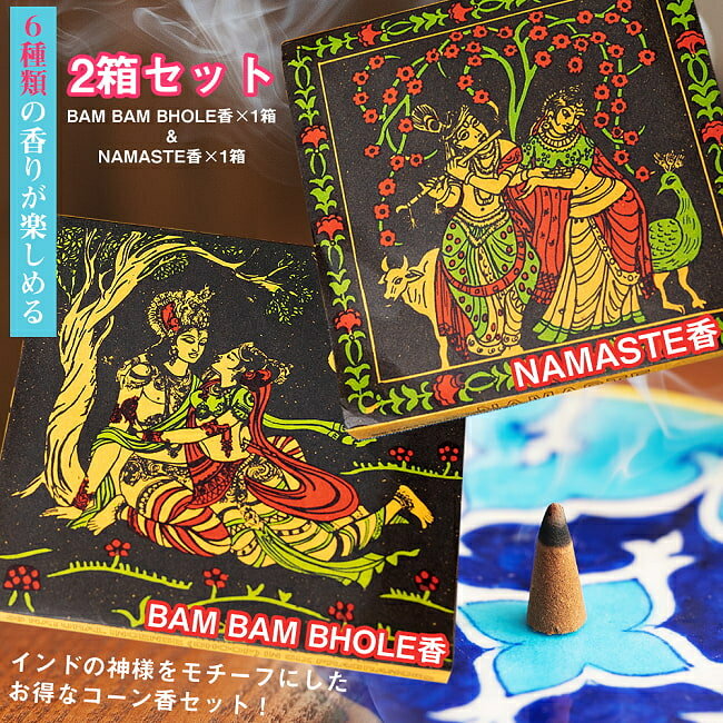 シヴァ神とクリシュナのお香 Bam Bhole香&NAMASTE香〔2箱セット〕ナチュラルインセンス コーン香セット / Shiva ナタラージャ ヒンドゥー教インセンス ラーマヤナ インドのコーン香 アジア エスニック