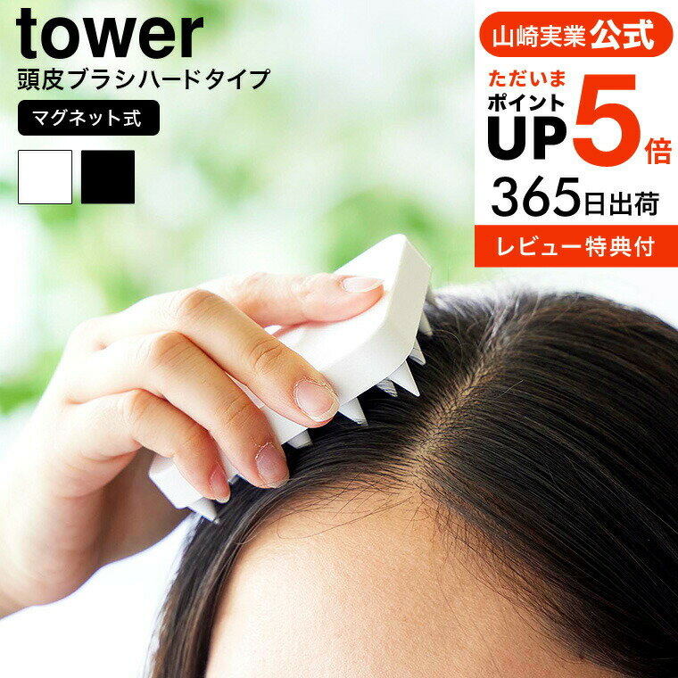 (土・日発送可) [ マグネット頭皮マッサージブラシ タワー ハードタイプ ] 山崎実業 公式 tower 1771 1772 ホワイト ブラック / 頭皮ブラシ シャンプーブラシ スカルプブラシ ヘアブラシ バスルーム 収納 JGS 最強配送 送料無料