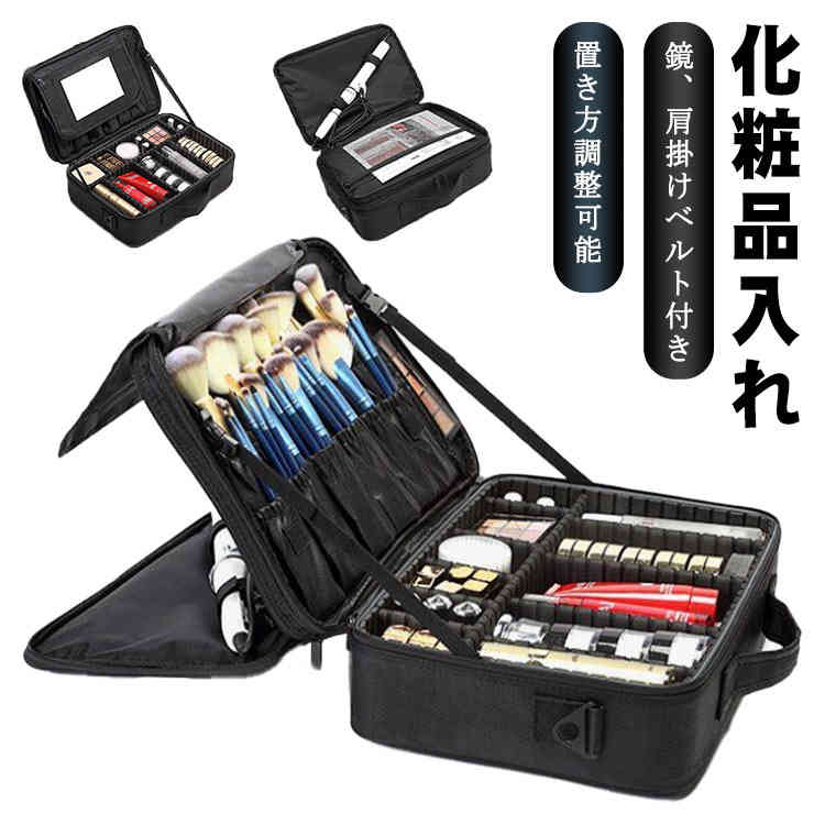 肩掛け ベルト付き プロ用 メイクボックス 大容量 鏡付き ミラー付き コスメボックス 化粧品 ケース コスメケース 化粧ボックス 化粧箱 メイク コスメ 収納 化粧品入れ バニティケース バニティバッグ 仕切り 防水 持ち運び 旅行 收納抜群
