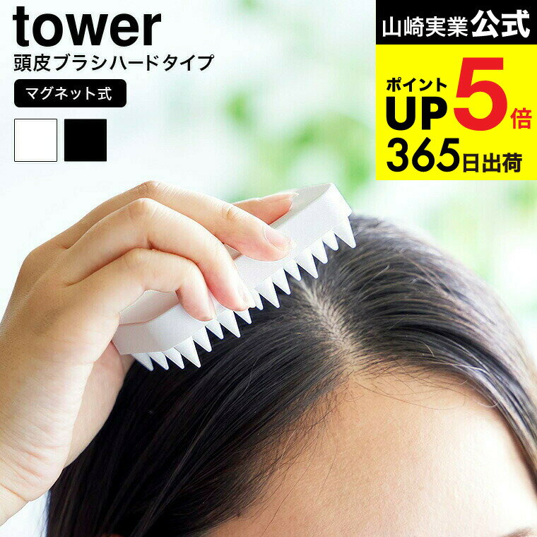 (土・日発送可) [ マグネット頭皮マッサージブラシ タワー ハードタイプ ] 山崎実業 公式 tower 1771 1772 ホワイト ブラック / 頭皮ブラシ シャンプーブラシ スカルプブラシ ヘアブラシ バスルーム 収納 JGS 最強配送 dej cpj 送料無料
